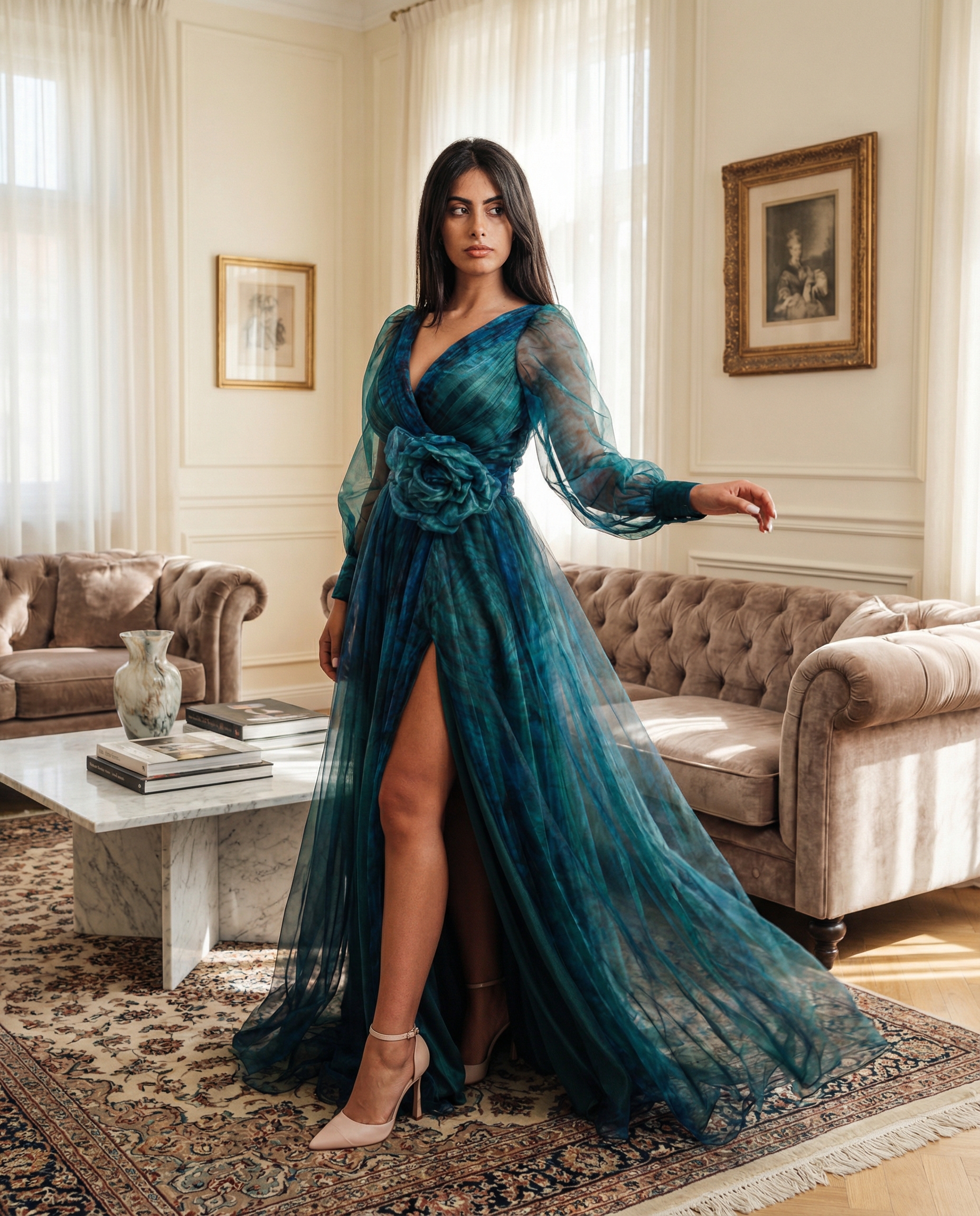 Un abito davvero magnetico, perfetto per chi vuole incantare con un’eleganza che sembra fluttuare.